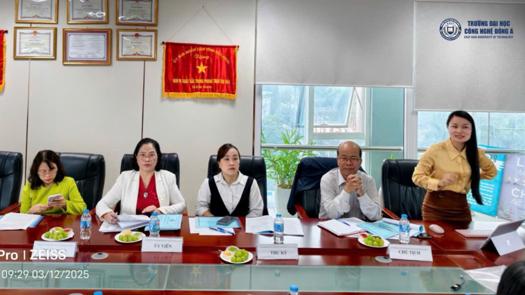 Sáng ngày 03/12/2025, tại Phòng họp tầng 5 tòa nhà Polyco, Phòng Nghiên cứu Khoa học Trường Đại học Công nghệ Đông Á đã tổ chức buổi nghiệm thu đề tài nghiên cứu khoa học cấp Trường của chủ nhiệm đề tài ThS. Phạm Thị Thanh Hương theo Quyết định số 551/QĐ-ĐHCNĐA ngày 26/11/2025 của Hiệu trưởng Trường Đại học Công nghệ Đông Á